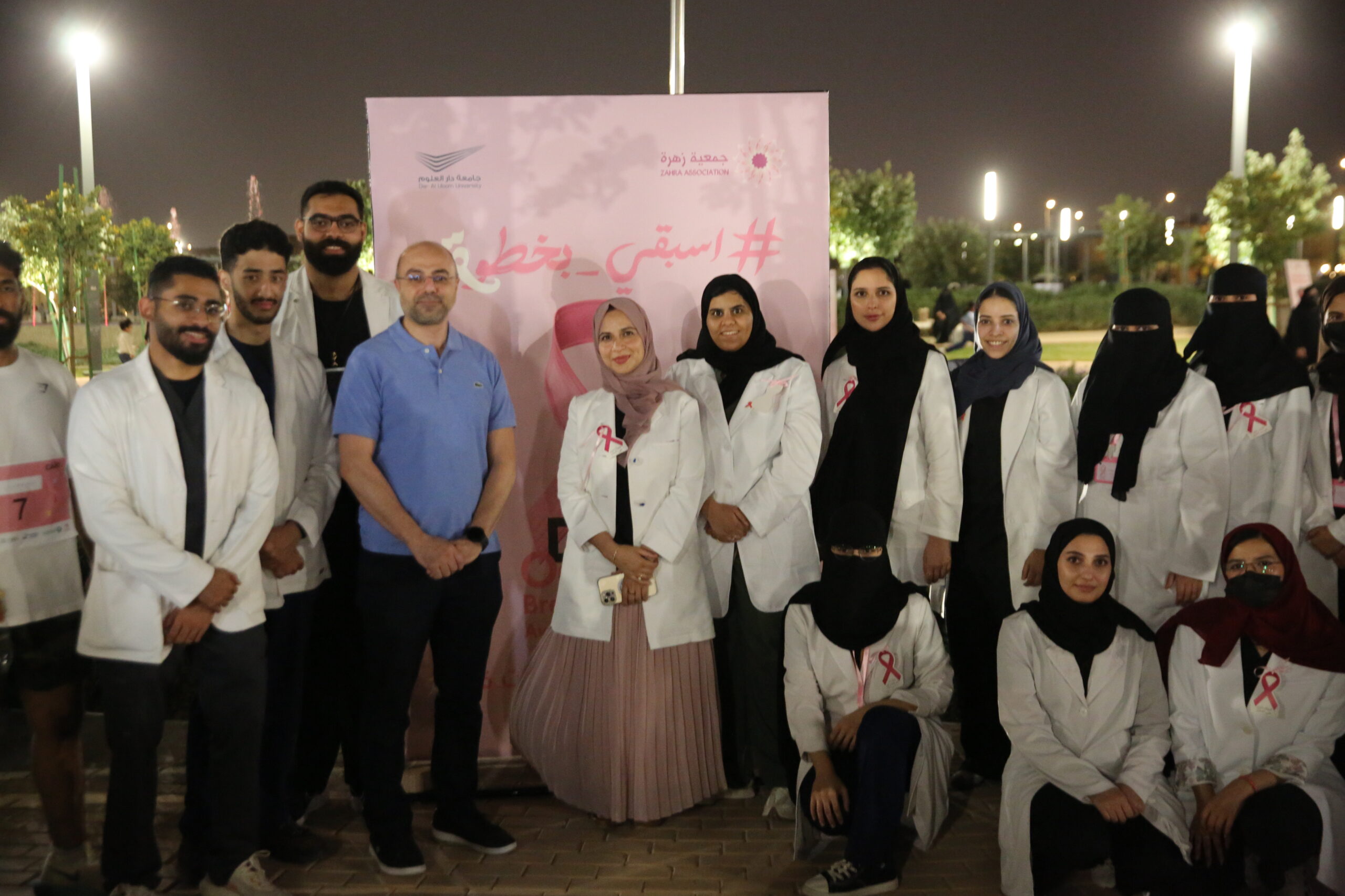 وشارك طلاب وطالبات المجلس الطلابي بركن تثقيفي في فعالية “اركض للصحة” حيث تم توزيع منشورات تتضمن معلومات مهمة عن سرطان ثدي، ورسائل كتبنها محاربات سرطان الثدي.