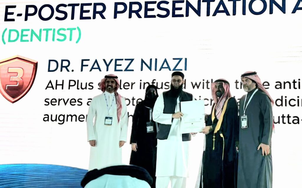 في إنجاز علمي جديد يُضاف إلى سجل كلية طب الأسنان بجامعة دار العلوم، حقق عضوا هيئة التدريس بالكلية مركزين متقدمين في مسابقة الملصقات البحثية العلمية، وذلك ضمن فعاليات المؤتمر السابع والثلاثين للجمعية السعودية لطب الأسنان، الذي شهد مشاركة أكثر من 200 باحث من مختلف مناطق المملكة ودول الخليج. حيث حصل سعادة الدكتور عبد العزيز سمران على المركز الثاني عن بحثه بعنوان: The influence of remaining teeth structure and restorative materials on the fracture resistance of endocrowns: An in vitro study كما حصل سعادة الدكتور فايز نيازي المركز الثالث عن بحثه بعنوان: AH Plus sealer infused with a triple antibiotic medicament serves as a potent antimicrobial agent against E. faecalis, augmenting the bond strength of gutta-percha to canal dentin ويعكس هذا التميز مستوى الكفاءة العلمية والبحثية الذي يتمتع به أعضاء هيئة التدريس بالكلية، وحرصهم المستمر على الإسهام في تطوير المعرفة والبحث العلمي في مجال طب الأسنان، بما يعزز حضور الجامعة في المحافل العلمية المتخصصة. وتتقدم الكلية بخالص التهنئة للزميلين الكريمين، متمنيةً لهما دوام التوفيق ومزيدًا من النجاحات والإنجازات العلمية.