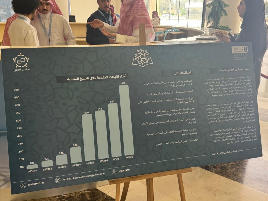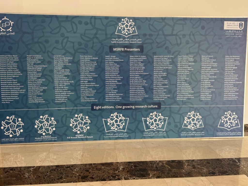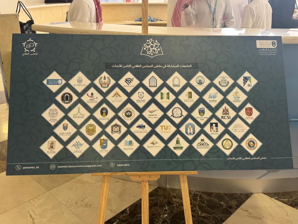 مشاركة جامعة دار العلوم ممثلة بكلية الطب في ملتقى الابحاث الطلابي الثامن في كلية الطب بجامعة الملك سعود