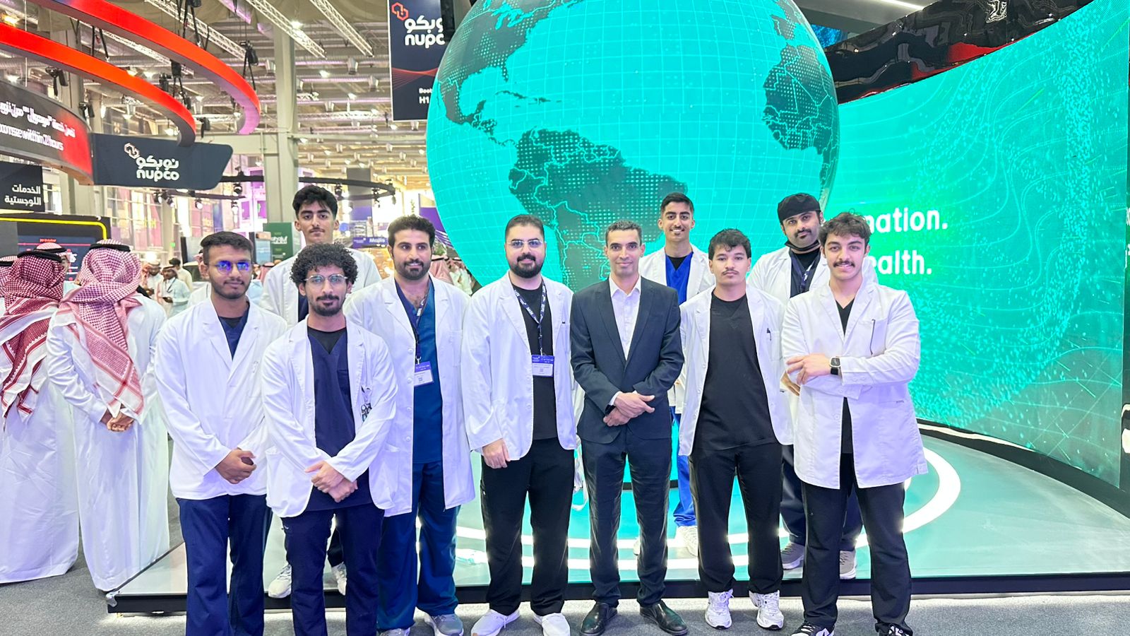 As part of its commitment to empowering students with hands-on experience and strengthening their scientific and practical knowledge, the College of Pharmacy and Applied Medical Sciences at Dar Al Uloom University organized a field visit to the Global Health Exhibition 2025, recently held in Malham, Riyadh, with the participation of leading healthcare professionals and organizations from both local and international sectors. The visit included 15 students from the Nursing and Respiratory Therapy departments, accompanied by Dr. Ahmad ElSayed from the Nursing Department. Students had the opportunity to attend the Medical Excellence Forum and the Digital Health Forum, engaging with international experts and speakers on the latest advancements in medicine, healthcare, and the applications of artificial intelligence in clinical practice. This initiative aimed to enhance students’ competencies and bridge the gap between theory and practice by exposing them to cutting-edge innovations in the healthcare sector, thereby preparing them to become highly qualified national professionals