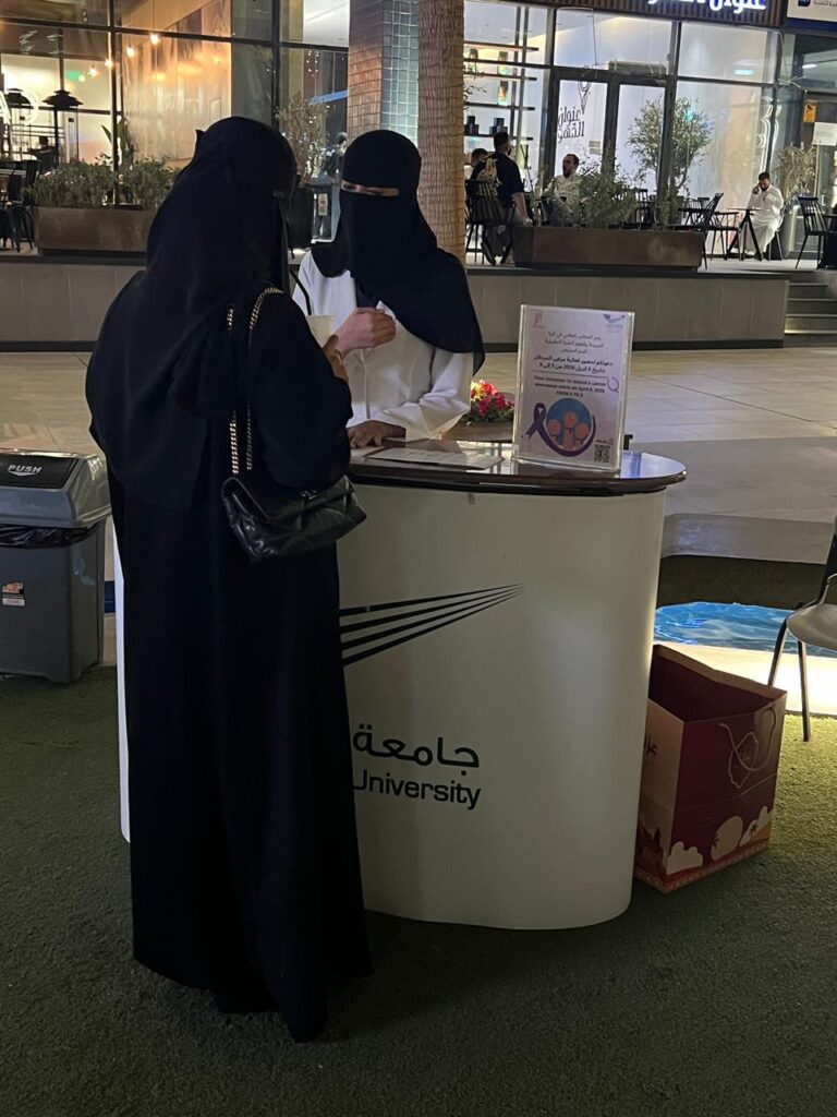 With participation of the Health colleges, the Nursing Department at the College of Pharmacy and Applied Medical Sciences, Dar Al Uloom University, launched a distinguished awareness campaign titled “Together Against Cancer,” at River Walk on Monday, April 6, 2026, aiming to make a meaningful impact on community awareness regarding one of today’s most critical health challenges. The campaign emphasized that prevention begins with knowledge, as faculty members and nursing students delivered an engaging educational experience through interactive stations. These stations introduced visitors to cancer, its common types, causes, symptoms, and associated risk factors. Special focus was placed on the vital role of early detection in improving treatment outcomes, while highlighting that a healthy lifestyle remains the first line of defense through balanced nutrition, regular physical activity, and avoiding harmful behaviors. The event featured an interactive atmosphere that engaged visitors through discussions and awareness questions, along with the distribution of simplified educational materials. It witnessed strong attendance and positive engagement, reflecting its success in raising health awareness and encouraging the adoption of healthier lifestyles, as part of the college’s ongoing commitment to promoting preventive health culture