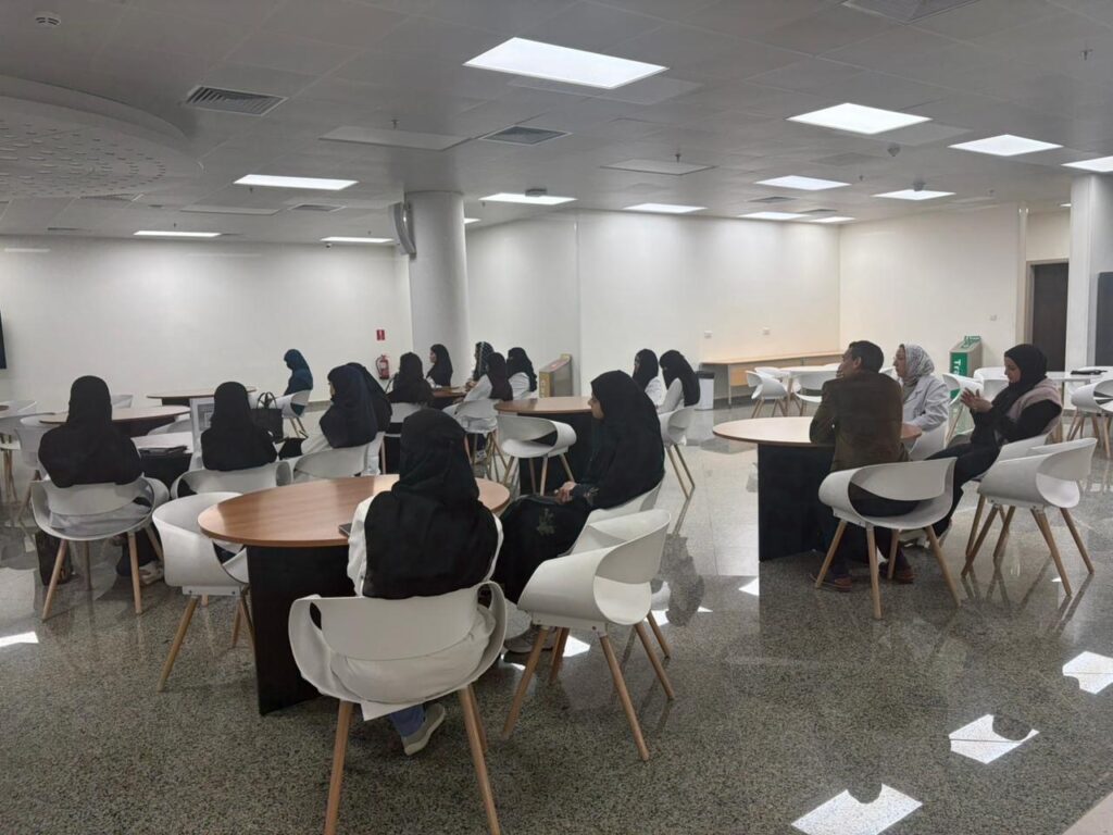 featured a workshop conducted by Dr. Ahmad Saad, Assistant Professor of Mental Health Nursing, and was attended by faculty members and students of Dar Al Uloom University. In addition, the event included an educational exhibition highlighting the importance of avoiding smoking and all forms of drugs abuse, aiming to raise community awareness about their risks. This initiative reflects the College and University’s ongoing commitment to community service and their proactive efforts to combat smoking and drugs abuse within society.